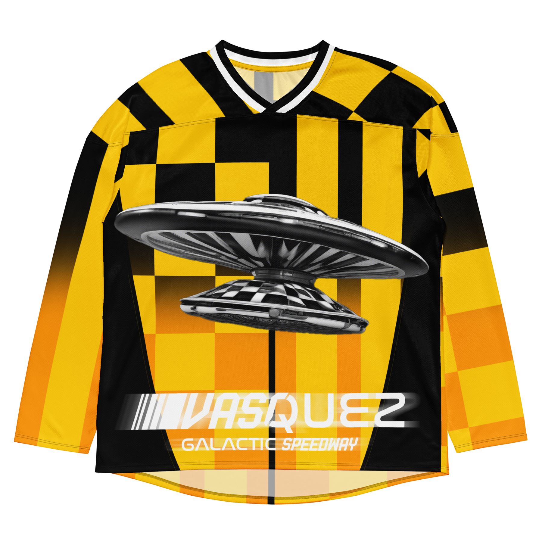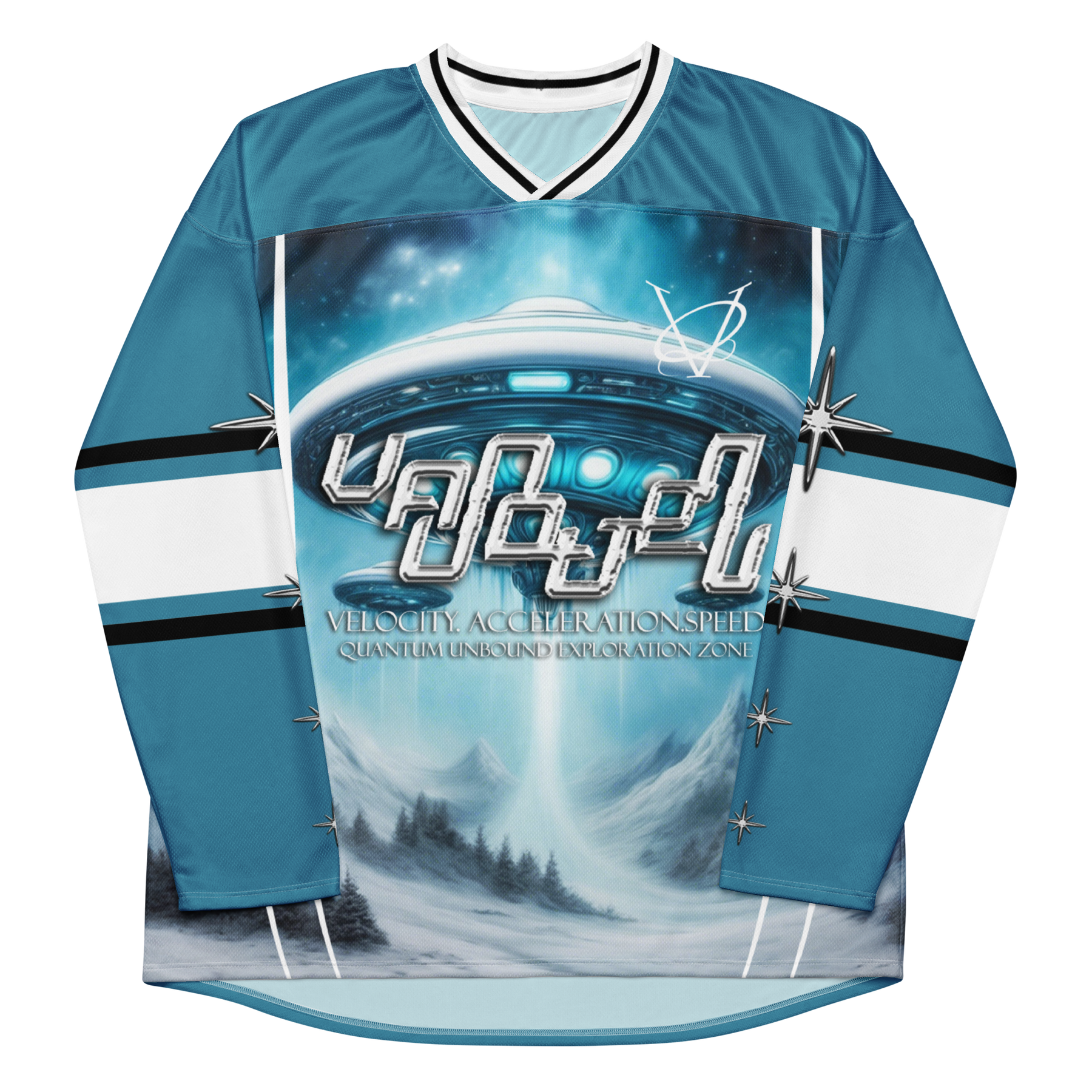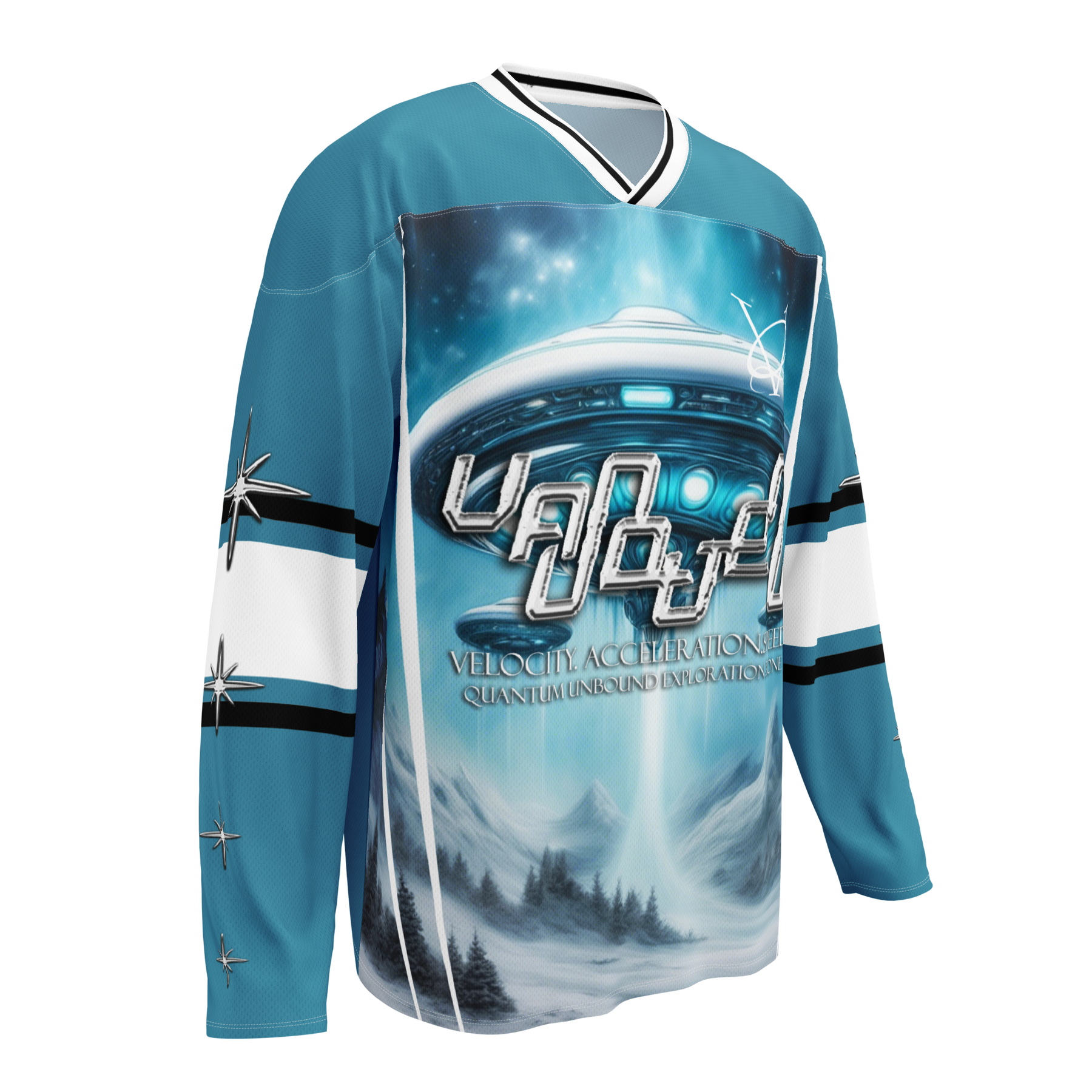 Engineered for performance but designed as a statement piece, this hockey jersey channels the spirit of movement and illusion by transforming traditional athletic wear into art.