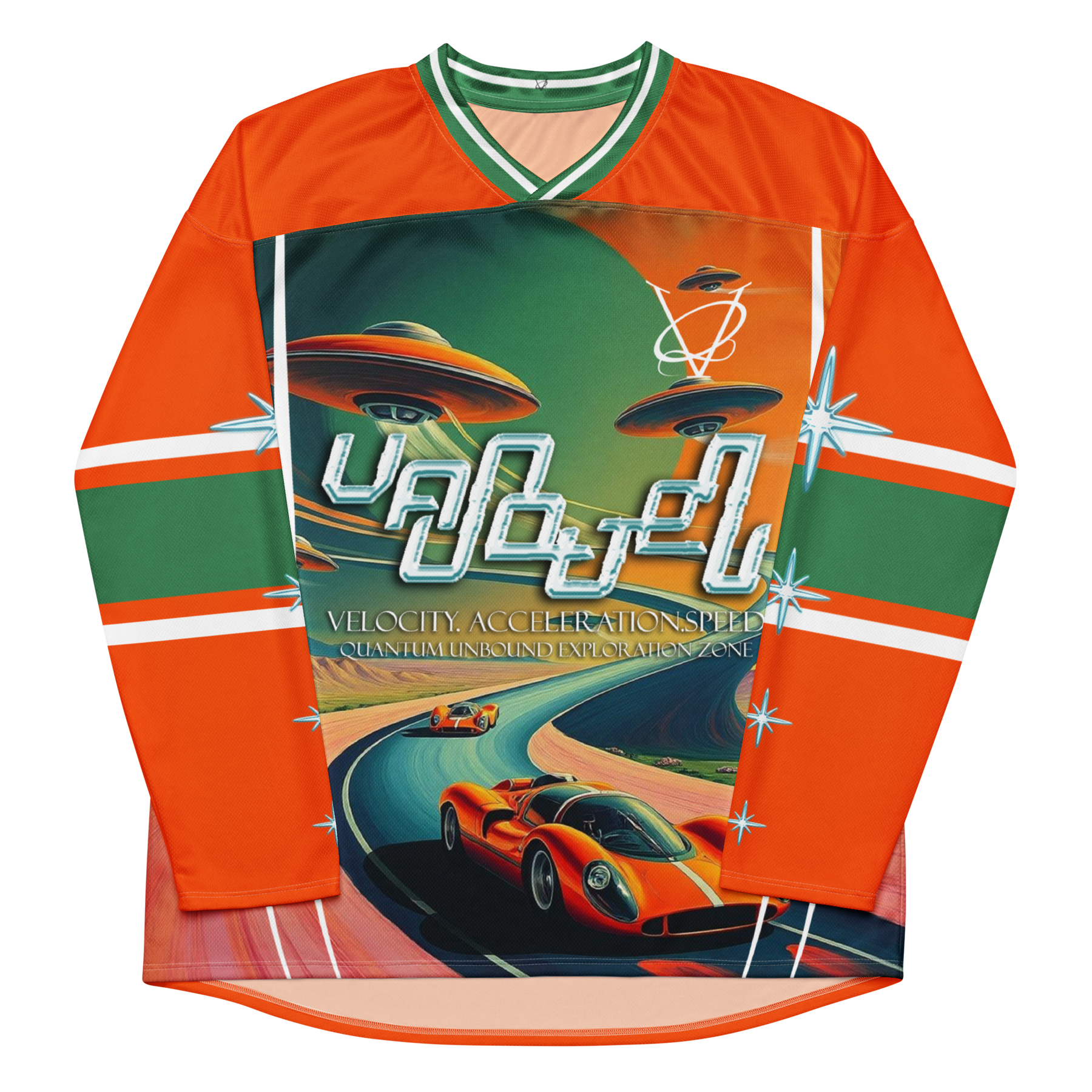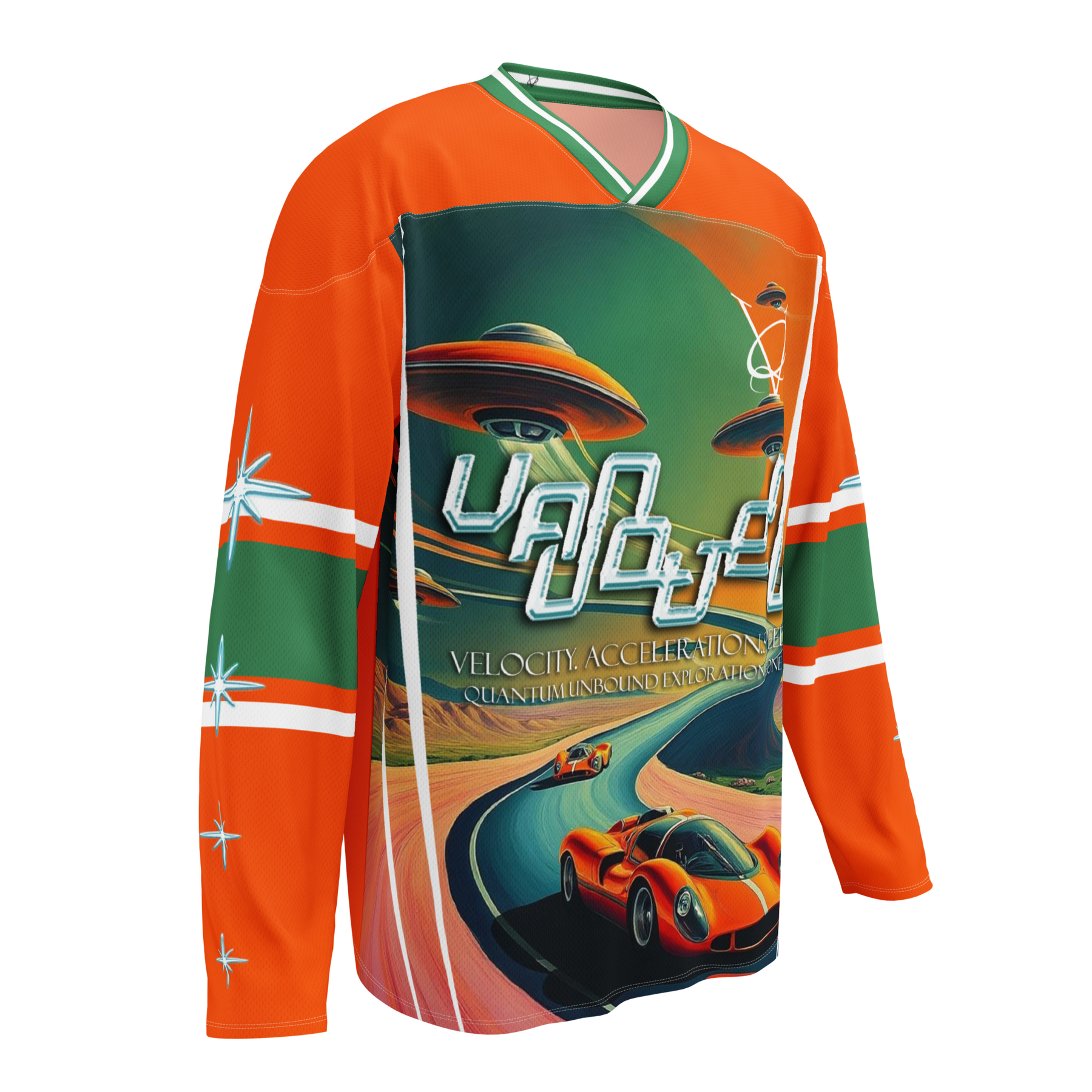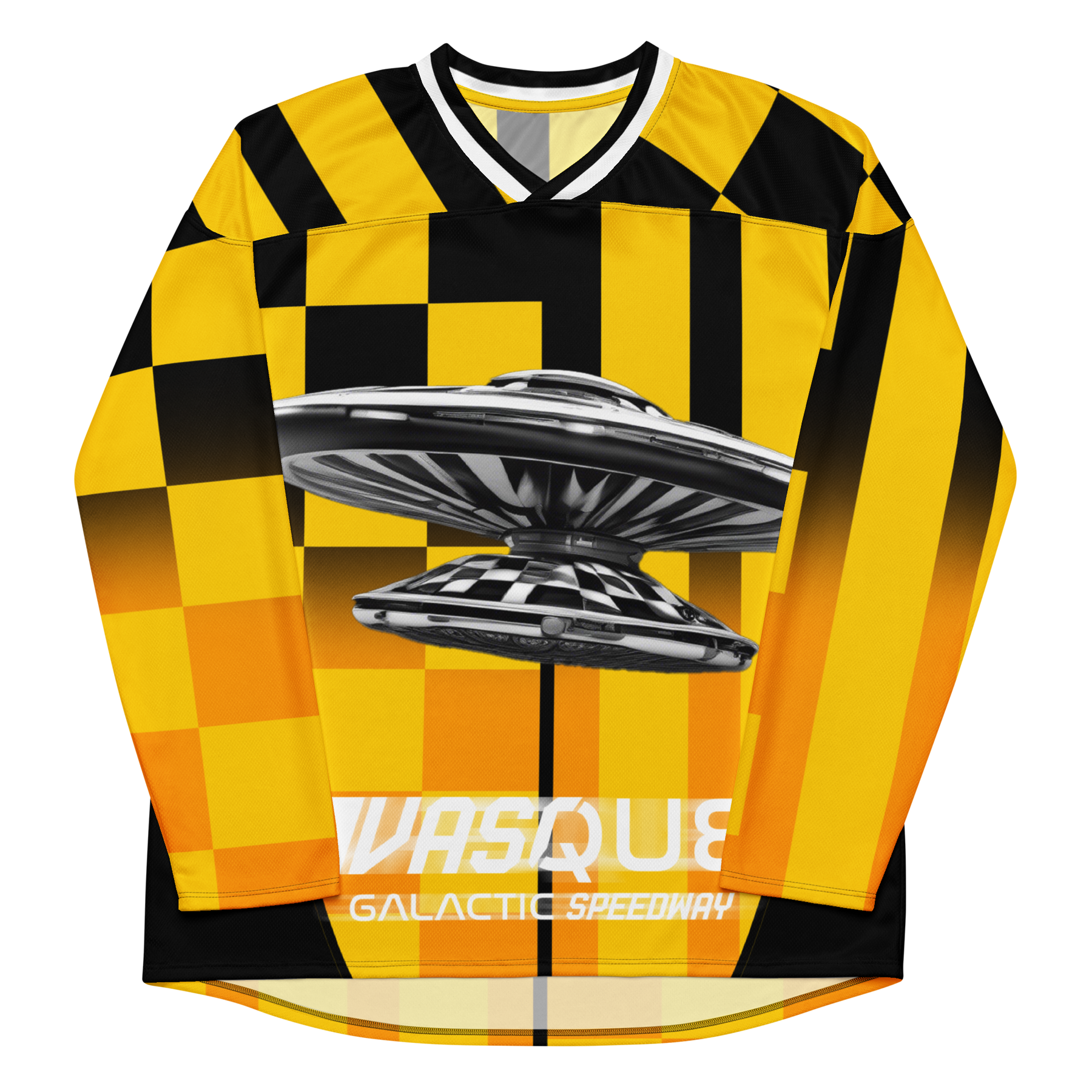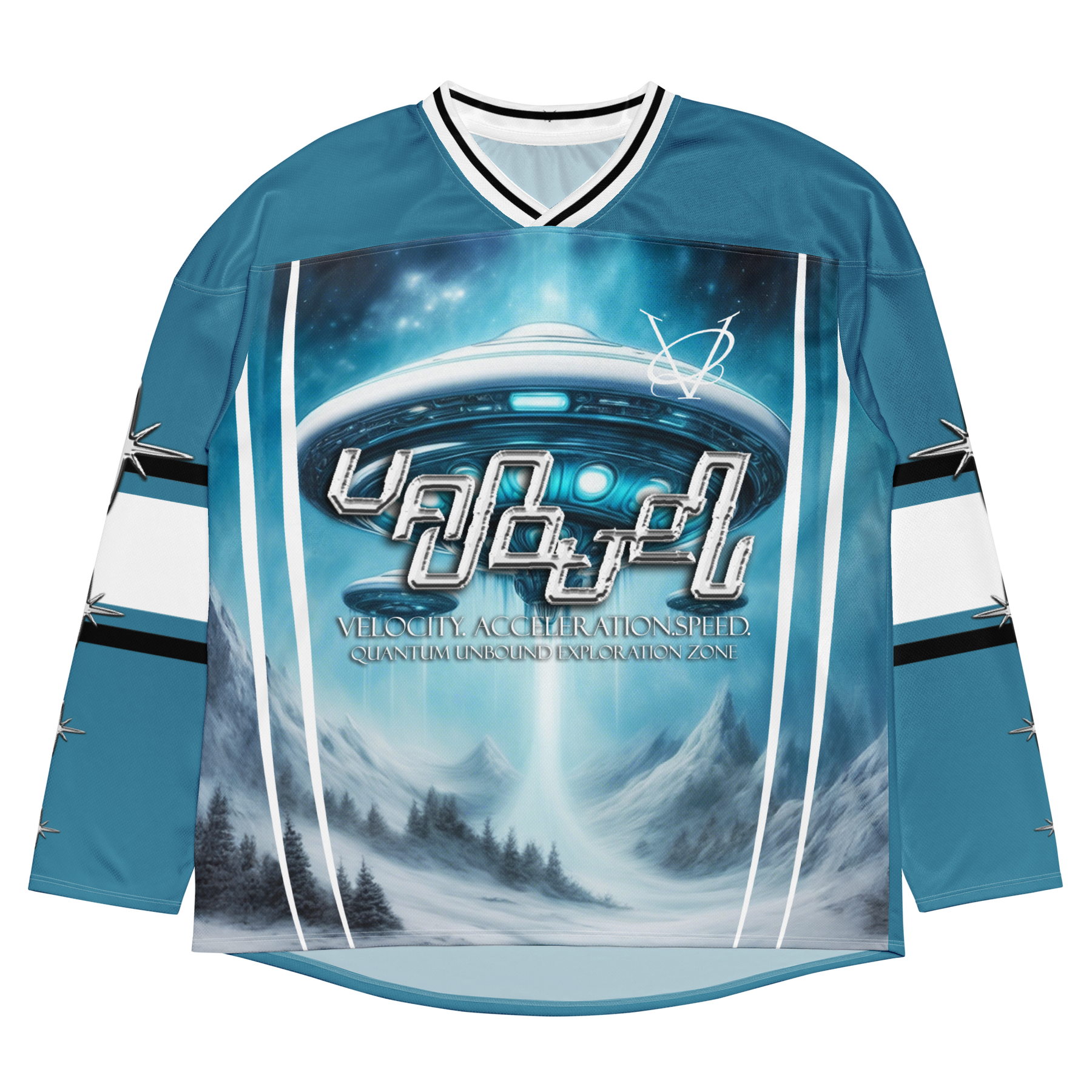 Engineered for performance but designed as a statement piece, this hockey jersey channels the spirit of movement and illusion by transforming traditional athletic wear into art.